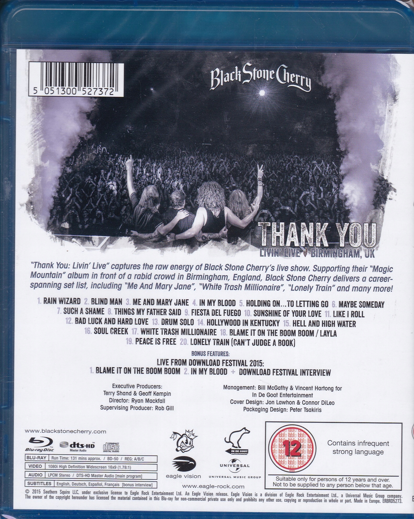 BLU RAY- BLACK STONE CHERRY- THANK YOU, LIVIN' LIVE: Бірмінгем, Великобританія, 30 жовтня 2014 (західний випуск)