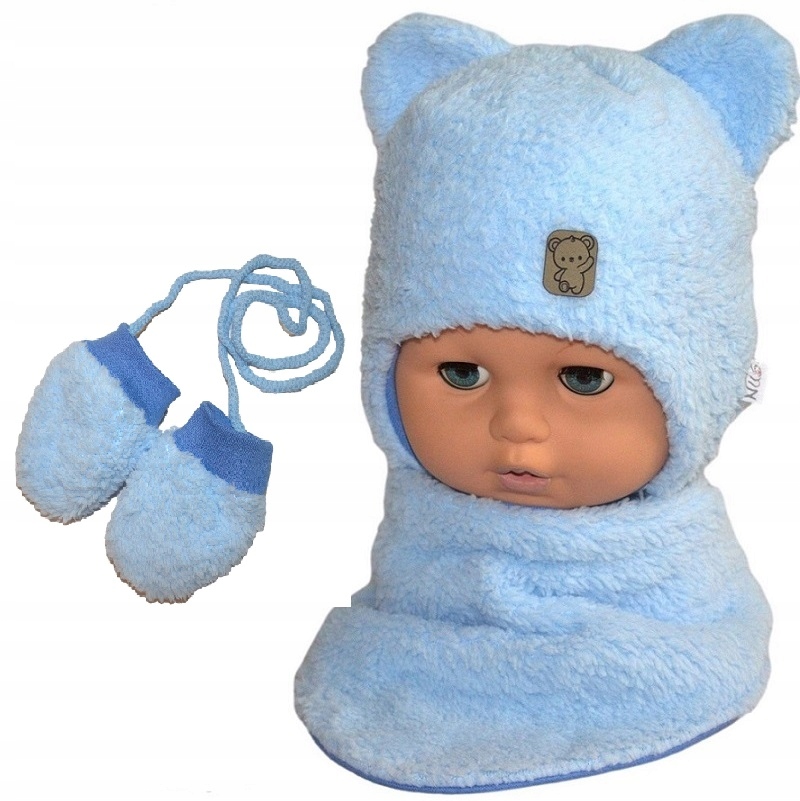 BLUE BABY ЗИМОВИЙ КОМПЛЕКТ ШАПКА, ХУСТКА, РУКАВИЧКИ 36 СМ ХУТРО