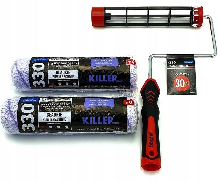 BLUE DOLPHIN 330 KILLER - це малярний валик, виготовлений з інноваційного матеріалу, покритого мікрофіброю, яка краще вбирає та відводить фарбу, не залишаючи щетини. Його перевагою також є простий монтаж. Навіть після багаторазового використання зберігає початкову пухнастість. Завдяки використанню фасок на кінцях валика виключається скупчення фарби на краях.