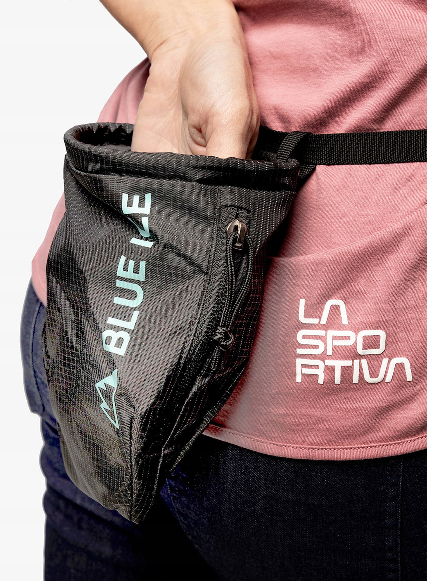 Крейдяна сумка Blue Ice Sender має кишеню на блискавці, у якій ви можете зберігати найцінніші речі, такі як посвідчення особи або ключі від автомобіля. Надзвичайно легкий стегновий ремінь означає, що ви практично не відчуєте вагу сумки на стегнах. Сам ремінь знімний, тому ви можете прикріпити сумку прямо до своїх штанів для скелелазіння. Сумка також має шнурок зі стопором із мотузки, який дозволить закріпити крейду всередині по дорозі на тренування. Завдяки цьому ви можете бути впевнені, що ваш рюкзак та решта обладнання, яке ви носите, будуть чистими.