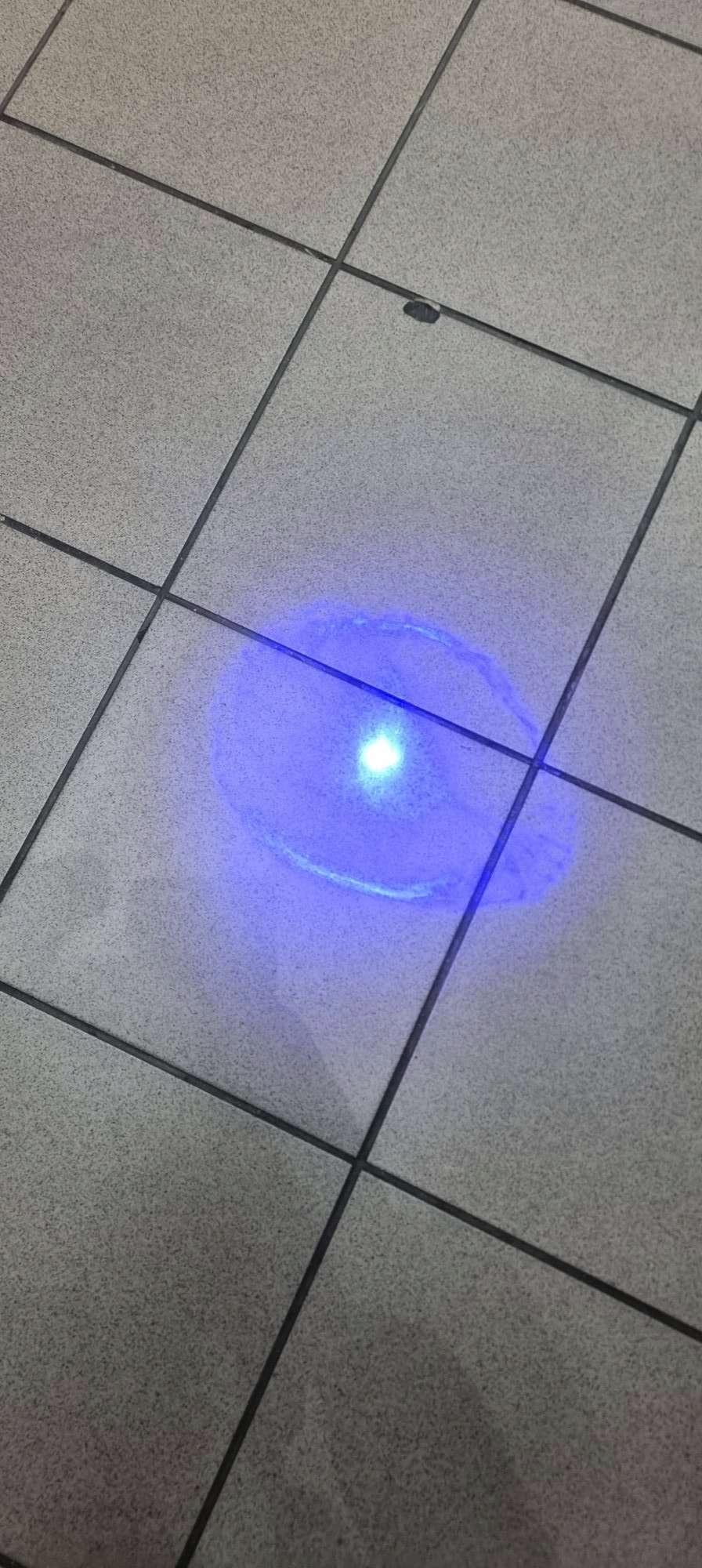 УВАГА: Лазер може працювати максимум 2,5 хвилини, потім його слід на деякий час вимкнути, щоб охолонути. Тривале використання призведе до деформації лінзи, що призведе до пошкодження лазера, що не буде включено до скарги. Пошкодження лінзи проявляється у вигляді великої плями замість точки, як на фото нижче