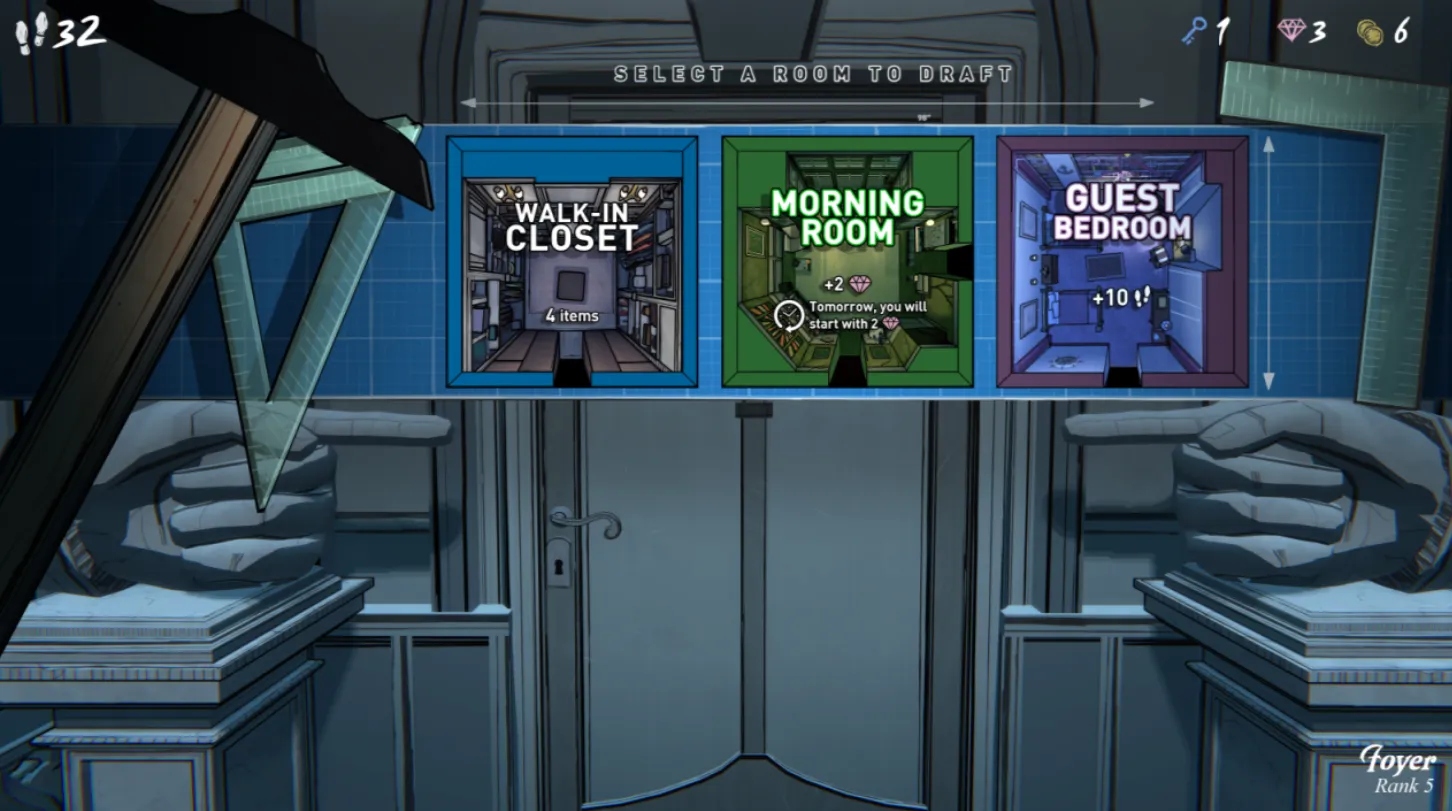 ПЛАНУВАННЯ ПОДОРОЖІ . Коли ви досягаєте зачинених дверей, ви вирішуєте, яка кімната буде з іншого боку. Кожне рішення визначає ваш шлях у маєтку. Кожні двері відкривають дивовижні нові кімнати з унікальними викликами та секретами. Однак будьте обережні, як ви малюєте макет маєтку - планування кімнат змінюється щодня, і кімнати, які ви відвідали сьогодні, можуть більше не бути знайдені завтра.