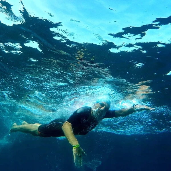 під час змагань з триатлону, коли вода перевищує певну температуру, організатор має право заборонити піни неопрену. Swimskin приходить на допомогу, тобто плавуча шкіра. Це продукт, який, хоча він не має переміщення, як піна, дозволить вам швидше текти і мінімізувати опір фігури у воді. Все завдяки інноваційним матеріалам, що використовуються у його виробництві. Блюзевенти, що плавають в італійському матеріалі Таяна. Він гідрофобний, не просочується водою і характеризується низькою гідродинамічною стійкістю. Матеріальні панелі, замість традиційних швів, були замінені шляхом з'єднання їх з ультразвуком, що дозволило створити ще більш плавну і більш обтічну структуру. Коротко -сідла версія, крім того, щоб забезпечити меншу стійкість у воді, завдяки її властивостям стиснення, покращує та підтримує м’язову роботу.
