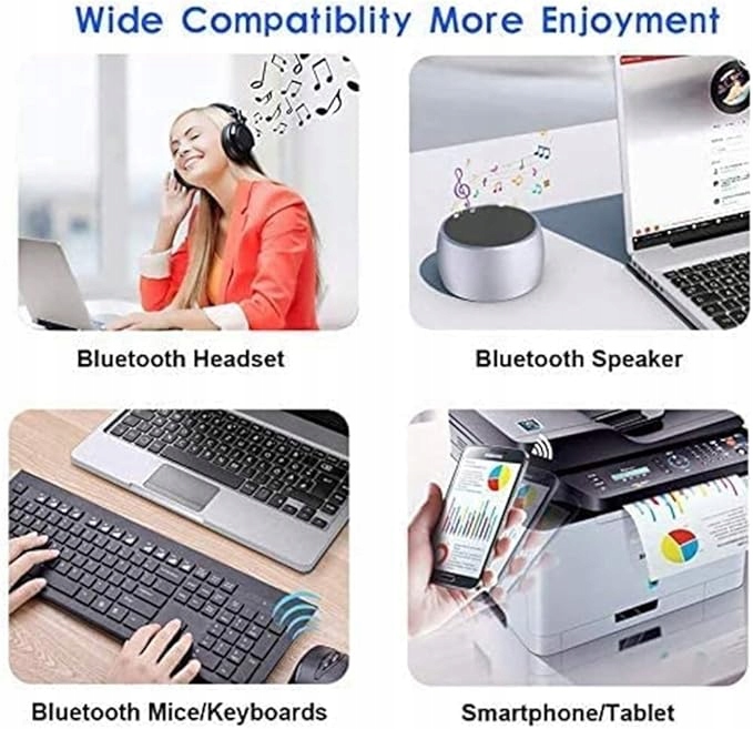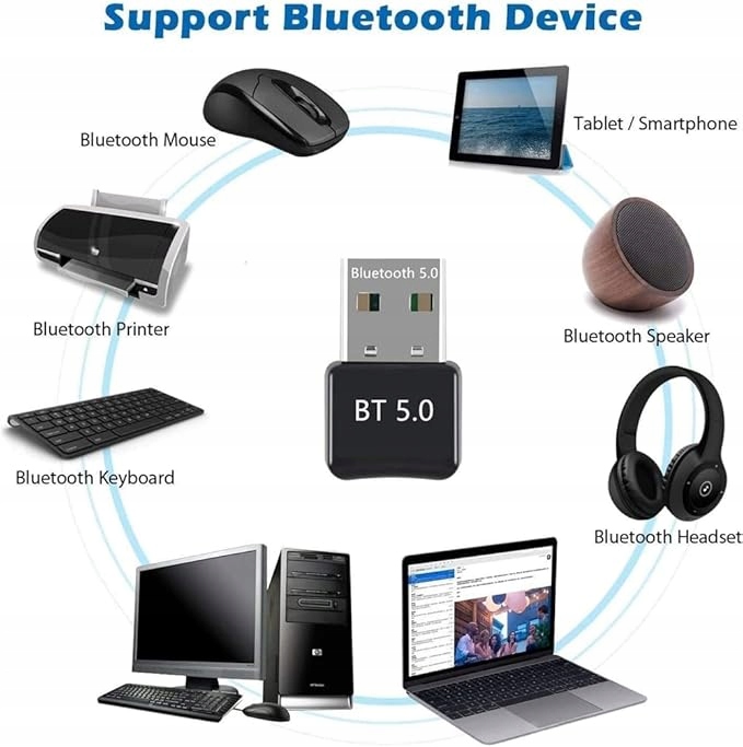 адаптер Bluetooth 5.0 TFUFR характеризується широкою сумісністю, що дозволяє легко додавати функцію Bluetooth до комп'ютера. Це дозволяє бездротове з'єднання з різними пристроями, такими як навушники, динаміки, клавіатури, миші, смартфони, планшети, принтери, проектори та ігрові контролери, що робить його ідеальним доповненням до будь -якого набору.