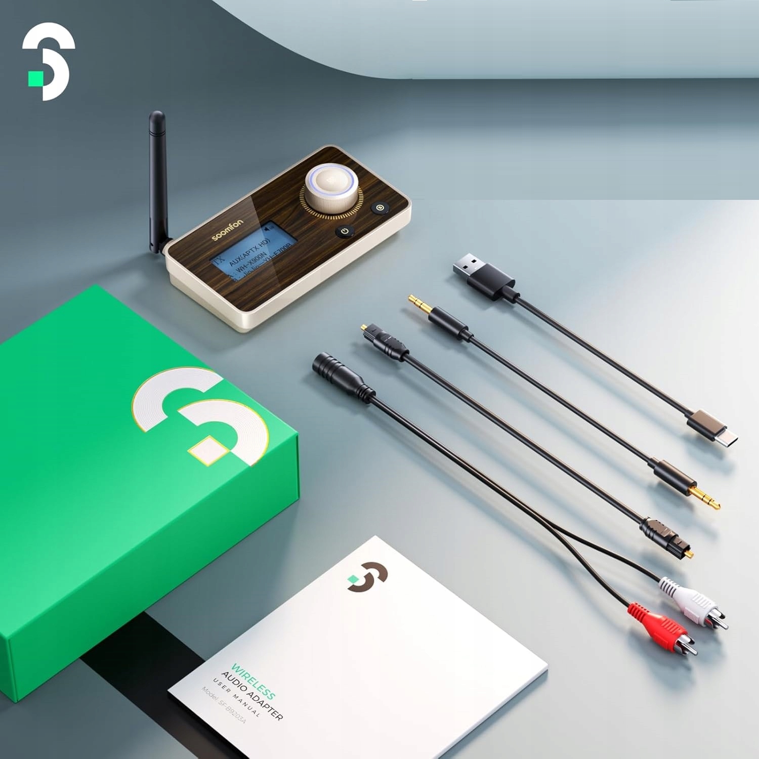 Bluetooth 5.2 адаптер приймач передавач Soomfon B9203A AUX RCA 3in1