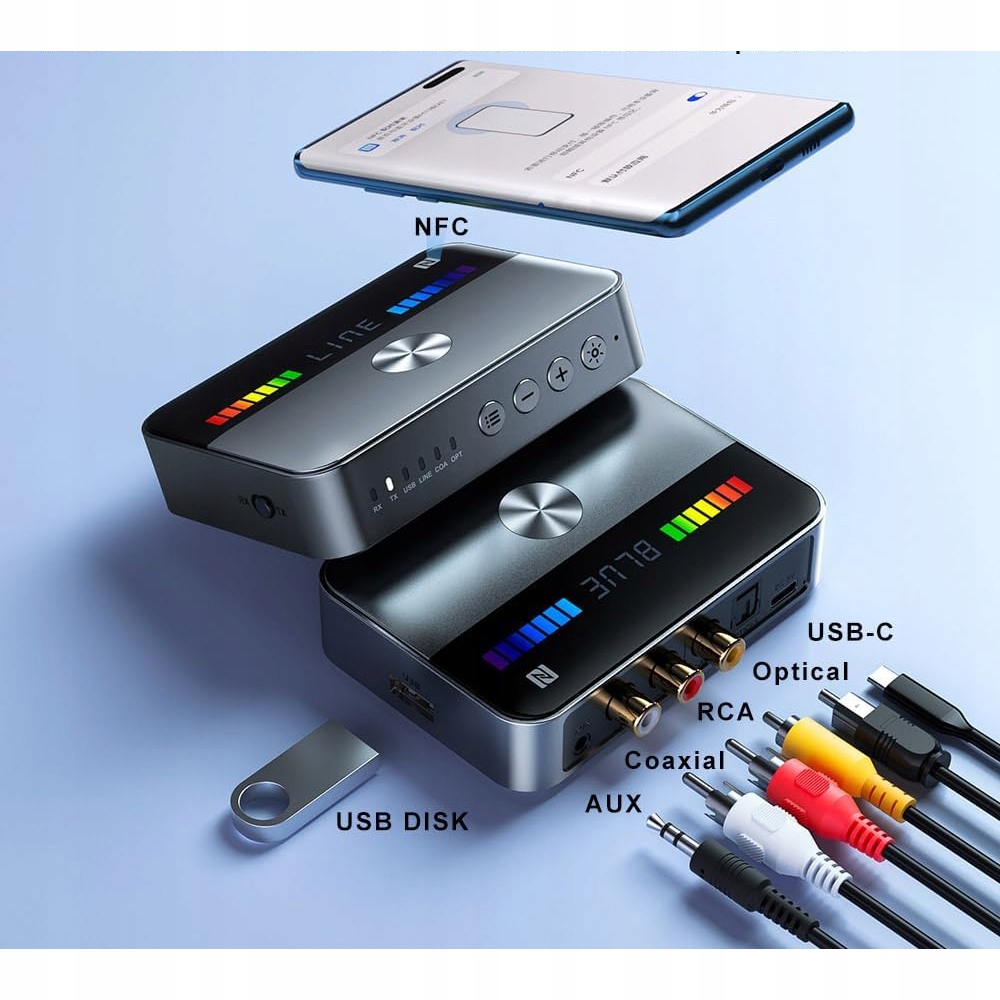 Bluetooth 5.3 Адаптер Audio TX RX LED NFC з вбудованим акумулятором 1000mAh