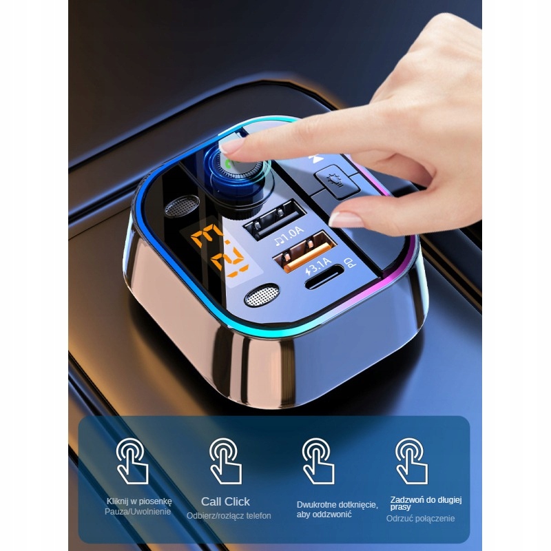 BLUETOOTH АУДІОПЕРЕДАВАЧ FM MP3 BT ШВИДКИЙ ЗАРЯДНИЙ ПРИСТРІЙ 3X USB QC 3.0 RGB