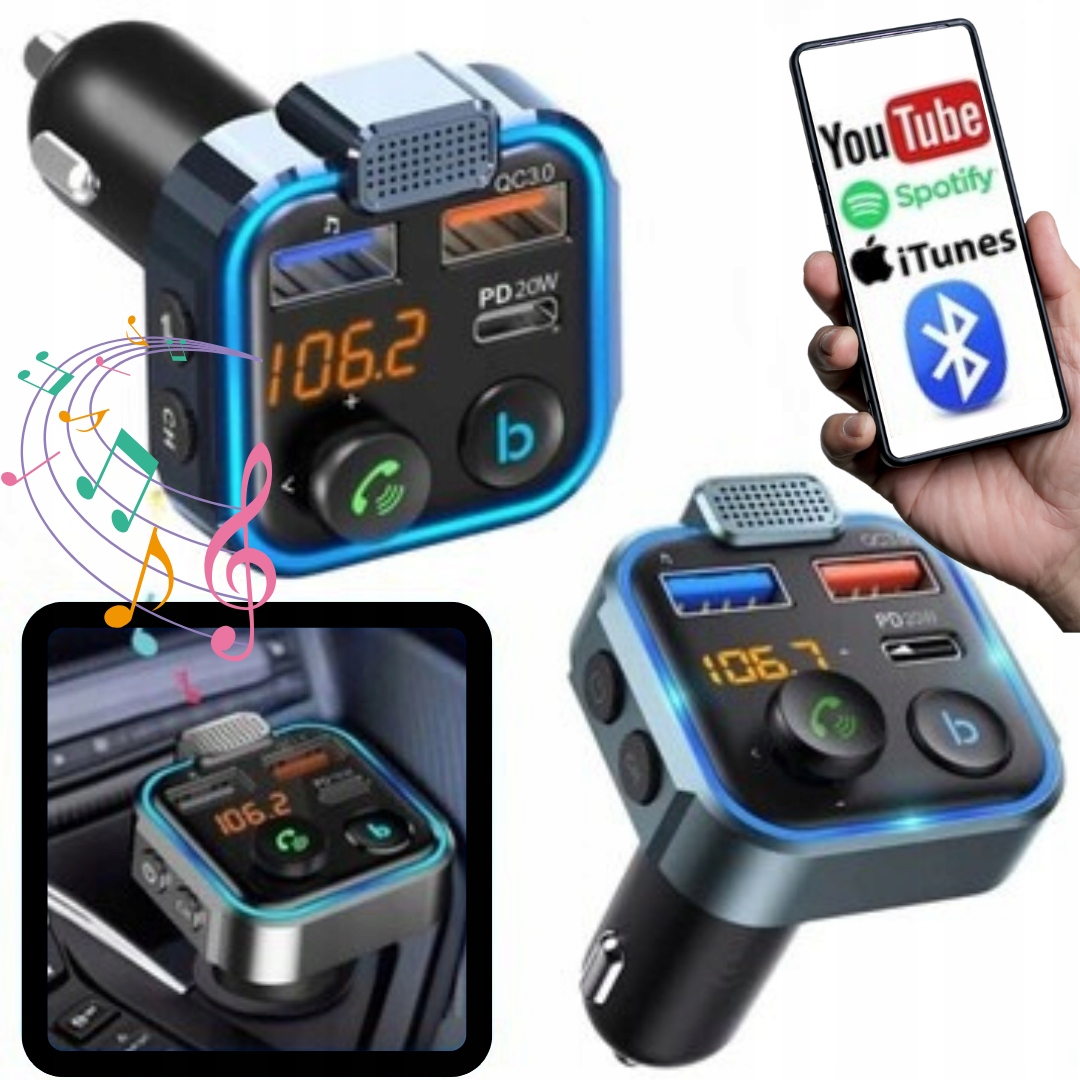 ✅ FM-ПЕРЕДАВАЧ BLUETOOTH, 3 USB + ШВИДКІ ЗАРЯДНІ ПРИСТРОЇ QC ТА USB-C