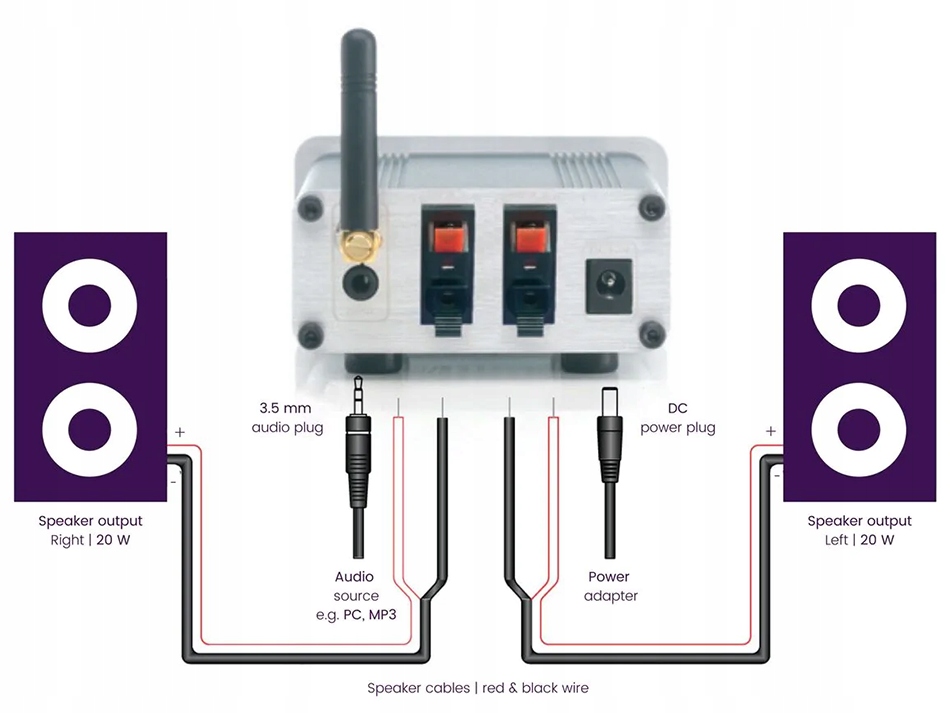 Просто підключітьBoomBoom 460 до свого мобільного пристрою та підключіть пару пасивних динаміків, щоб створити компактну аудіосистему. Це дозволяє, наприклад, відтворювати інтернет-радіо або музику з потокових служб, запущених на смартфоні чи планшеті, безпосередньо на динаміках, підключених до приймача BoomBoom 460.