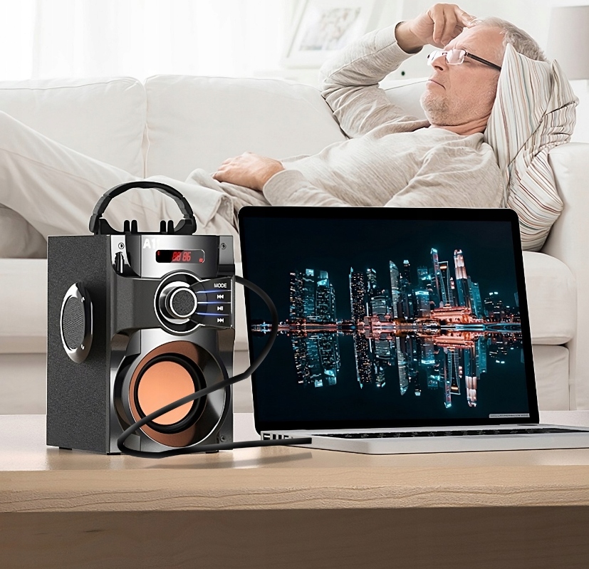 компактний bluetooth динамік ретру - вбудований -in -сабвуфер і додатково оснащений двома динаміками середнього діапазону. Загальна потужність набору - це 15 Вт RMS, завдяки якому ви організуєте кращу вечірку, ніж у клубі. Інтерфейс Bluetooth дозволяє слухати музику, що надсилається бездротово з пристрою, який підтримує технологію Bluetooth (наприклад, телефон, смартфон, планшет). Завдяки цій функції ви зможете вільно рухатися без будь -яких обмежень. Забудьте про кабелі, що заплутуються під ногами. Звук, що виходить з гучномовця, є надзвичайно чистим.