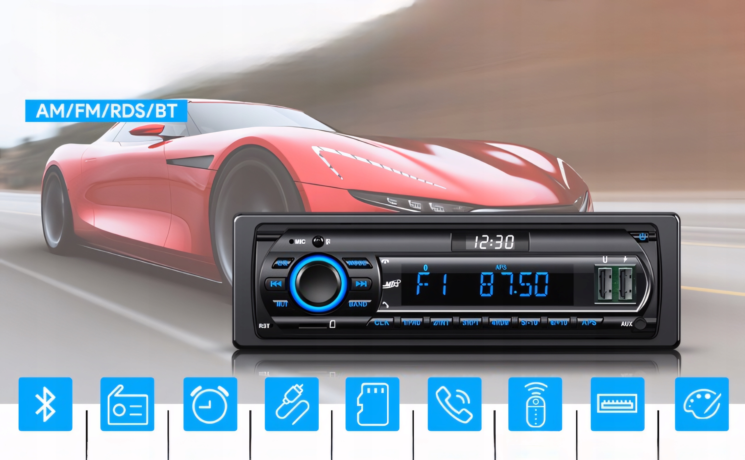 Автомобільне радіо поєднують мультимедіа, зв'язок та безпека . Завдяки Bluetooth 5.0 ви можете проводити бесіди, не тримаючи телефону в руці, а RDS забезпечує доступ до поточних доріг. 2 USB -порти (зарядка + музика), вхід AUX та слот TF змушують вас завжди мати доступ до улюблених пісень.