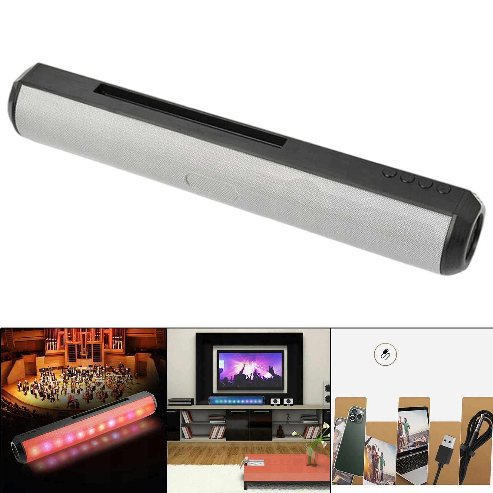 Підтримка карт TF і бездротове підключення до мобільних телефонів, ноутбуків, бездротове відтворення музики, дзвінки в режимі hands-free, підтримка FM-радіо.