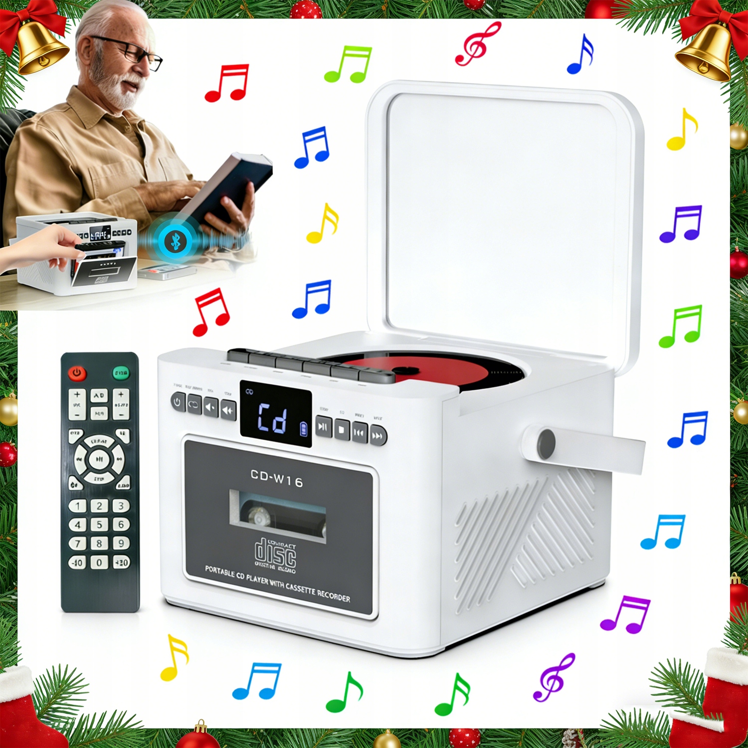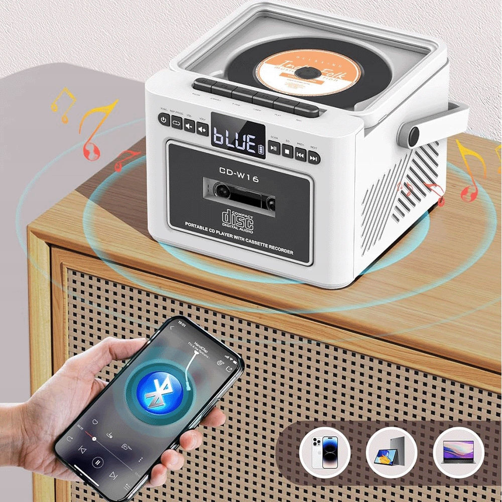 • ✨ Все в одному: CD, радіо, касета, Bluetooth 5.1, USB, AUX і SD-карта