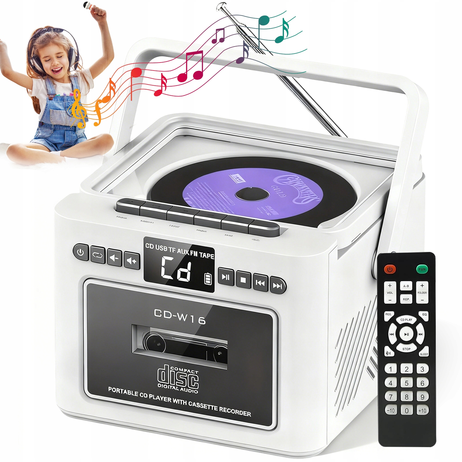 BLUETOOTH ДИНАМІК ПОРТАТИВНИЙ CD КАСЕТНИЙ ПРОГРАВУВАЧ РАДІО FM USB SD ПУЛЬТ ДИСТАНЦІЙНОГО ДИСТАНЦІЮ ТИПУ C