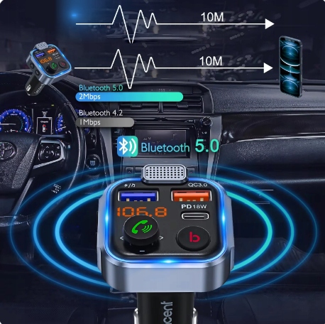 Трансмітер оснащений інтелектуальним чіпсетом, який автоматично регулює струм і захищає пристрої від перегріву, перенапруги або перезаряду, що підвищує безпеку використання в автомобілі.
