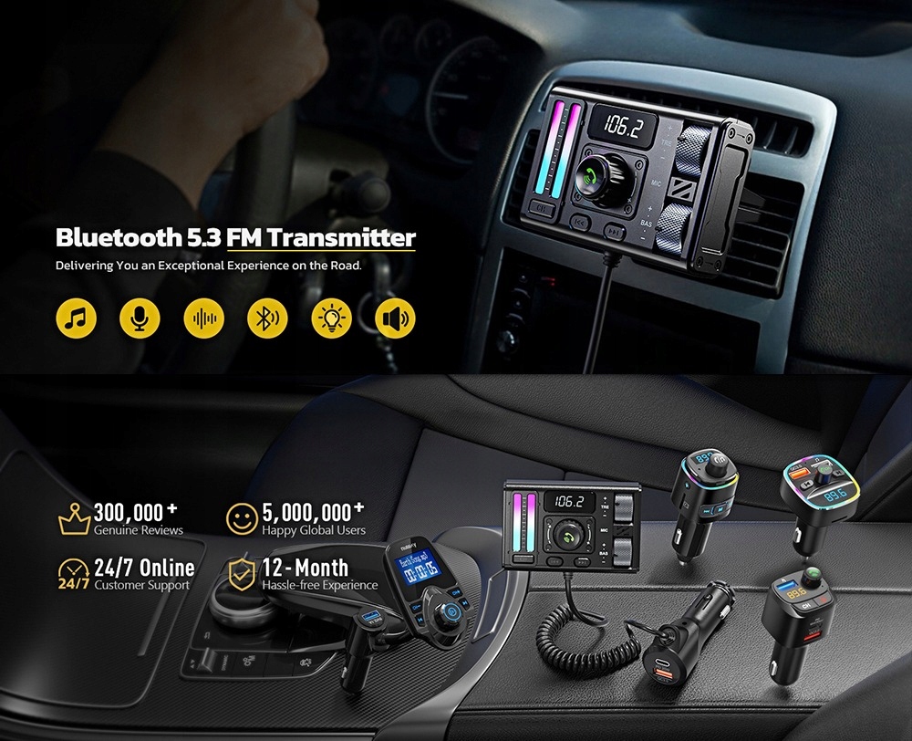 Безпека перш за все: Наш FM-передавач Bluetooth дозволяє використовувати його без рук. Він кріпиться на рівні очей до вентиляційного отвору для легкої та безпечної експлуатації. Крім того, його унікальні ліхтарі забезпечують освітлення вночі.