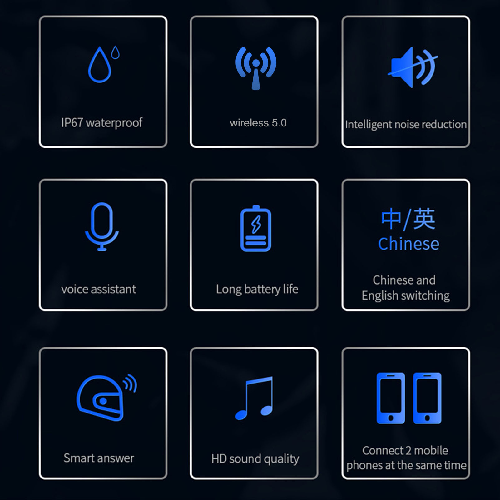 5. Водонепроникність IP67: водонепроникні динаміки шолома IP67 дозволяють без проблем використовувати його навіть у дощові чи сніжні дні. Підходить для будь-якого повного шолома та більшості напівшоломів, великими кнопками можна легко керувати навіть у рукавичках, дуже зручно під час їзди на мотоциклі, велосипеді, сноуборді, лижах тощо.
