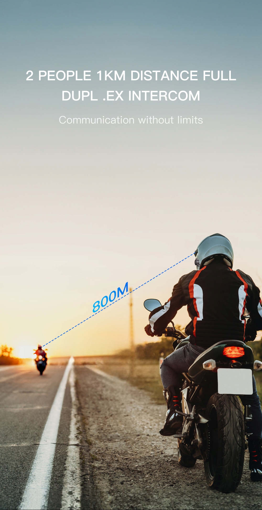 ✅Насолоджуйтесь повнодуплексною розмовою з іншим водієм на відстані до 800 метрів. Ви також можете ділитися музикою під час використання інтеркому завдяки подвійному Bluetooth