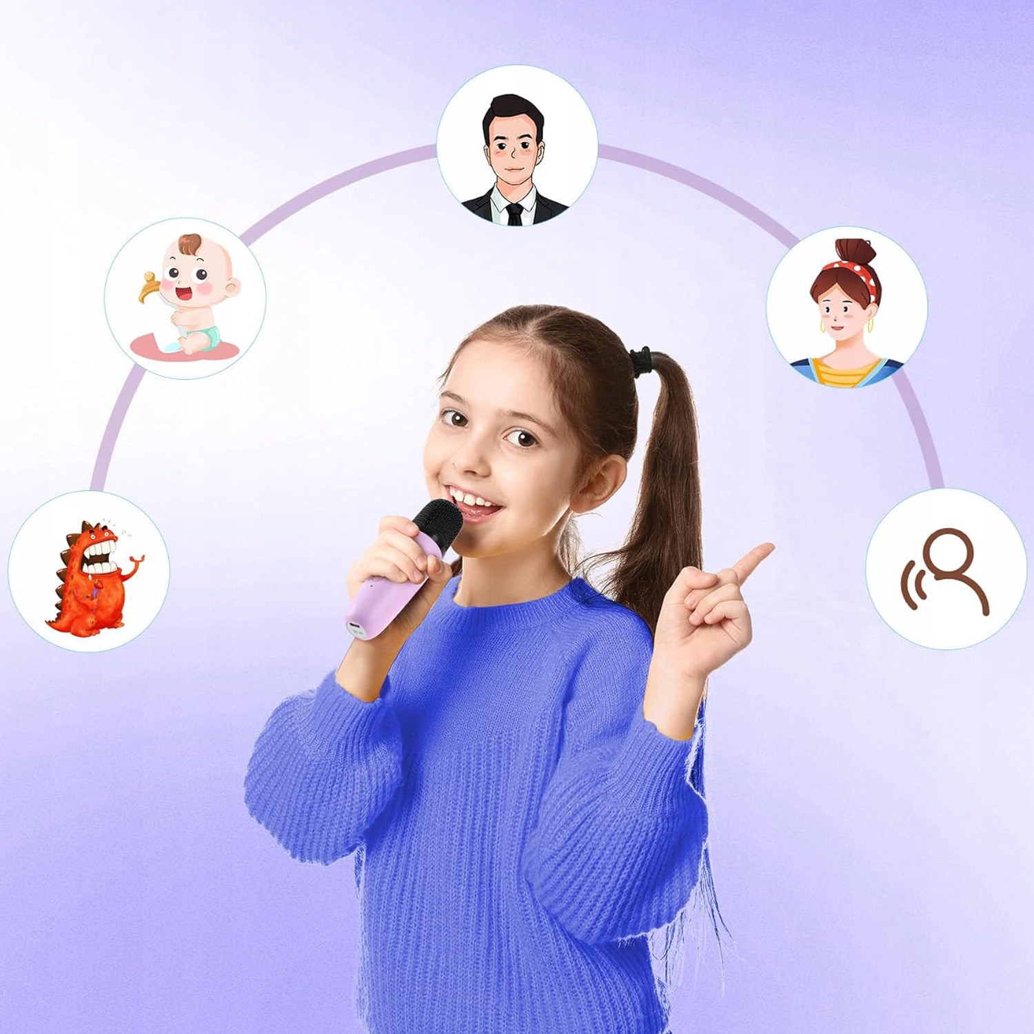 🎤- Мікрофон оснащено веселими голосовими режимами, які можна перемикати між голосом монстра, милим малюком, глибоким і чарівним жінка, забезпечуючи нескінченні розваги.