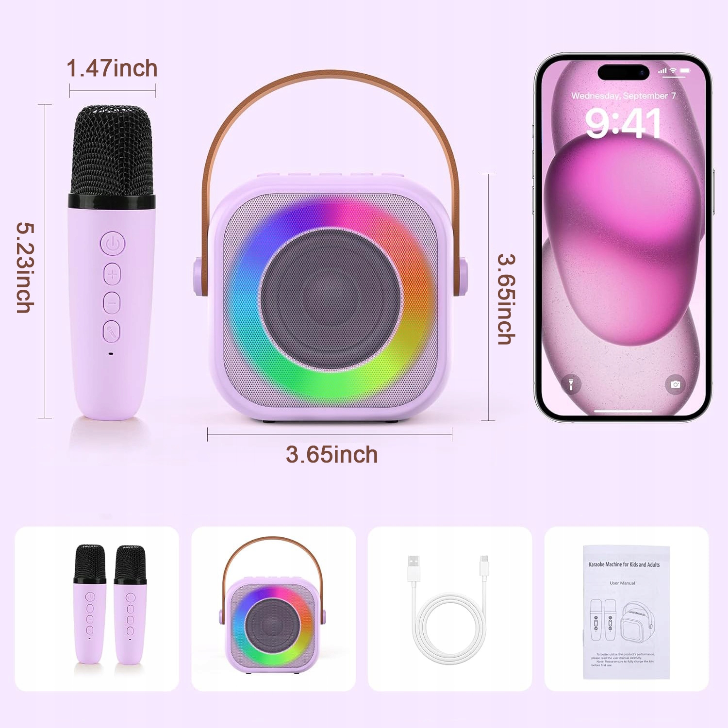 BLUETOOTH КАРАОКЕ ЛЕГКИЙ ПОРТАТИВНИЙ ФІОЛЕТОВИЙ ДЛЯ ДІТЕЙ