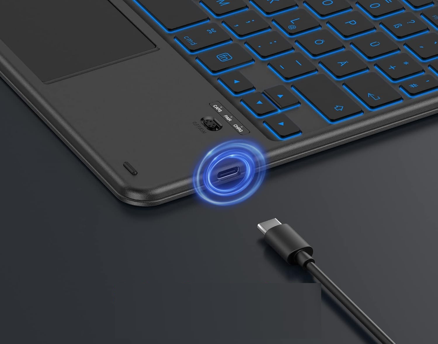 Ви шукаєте бездротову клавіатуру, яка працюватиме з вашим iPad, iPhone, Samsung або планшетом Android? Emetok — це надійна тонка Bluetooth-клавіатура з німецькою розкладкою клавіш, яка поєднує комфорт набору тексту з сучасним дизайном і ефективним підсвічуванням!