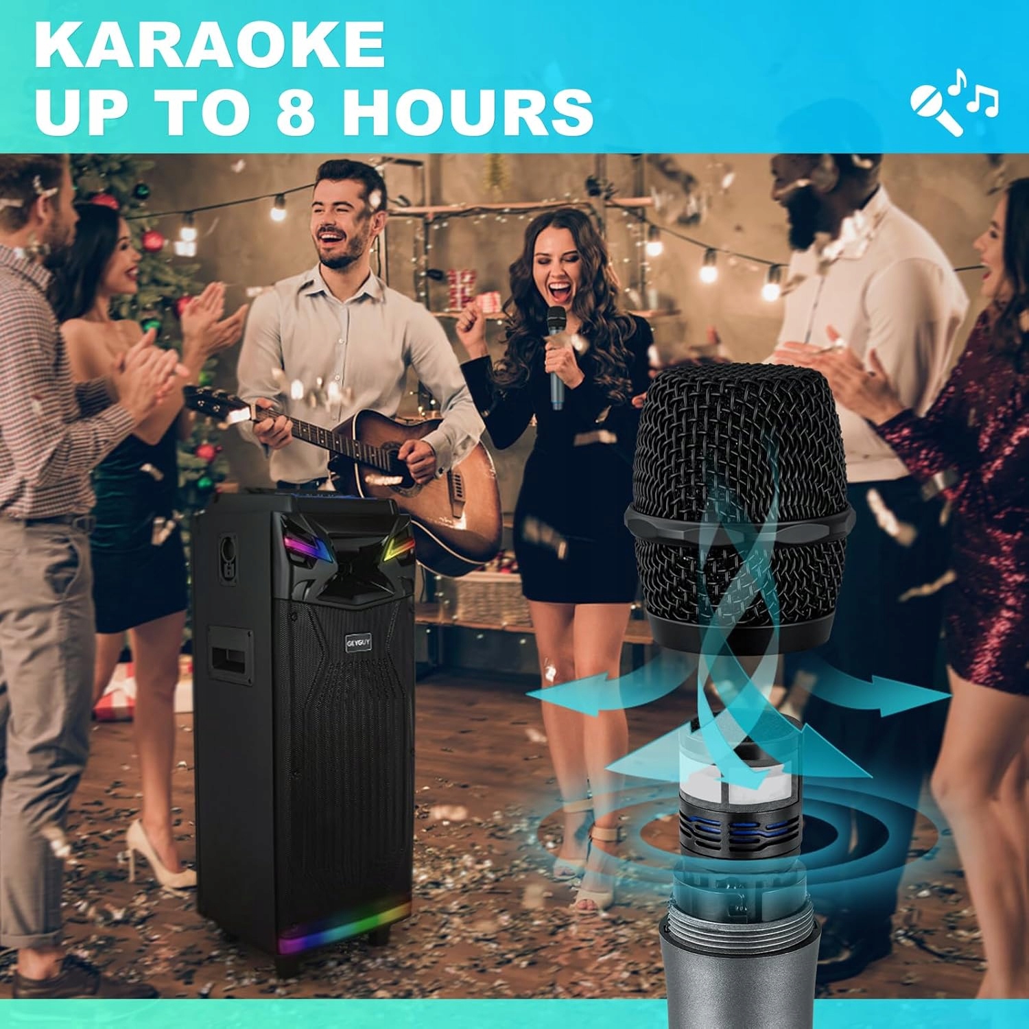 Караоке-система для дорослих GTSK210‑1 із 2 бездротовими мікрофонами, портативним динаміком Bluetooth, аудіосистемою з високими та низькими частотами, трансляцією в прямому ефірі, підтримкою карт USB/AUX/TF для домашніх та вуличних вечірок