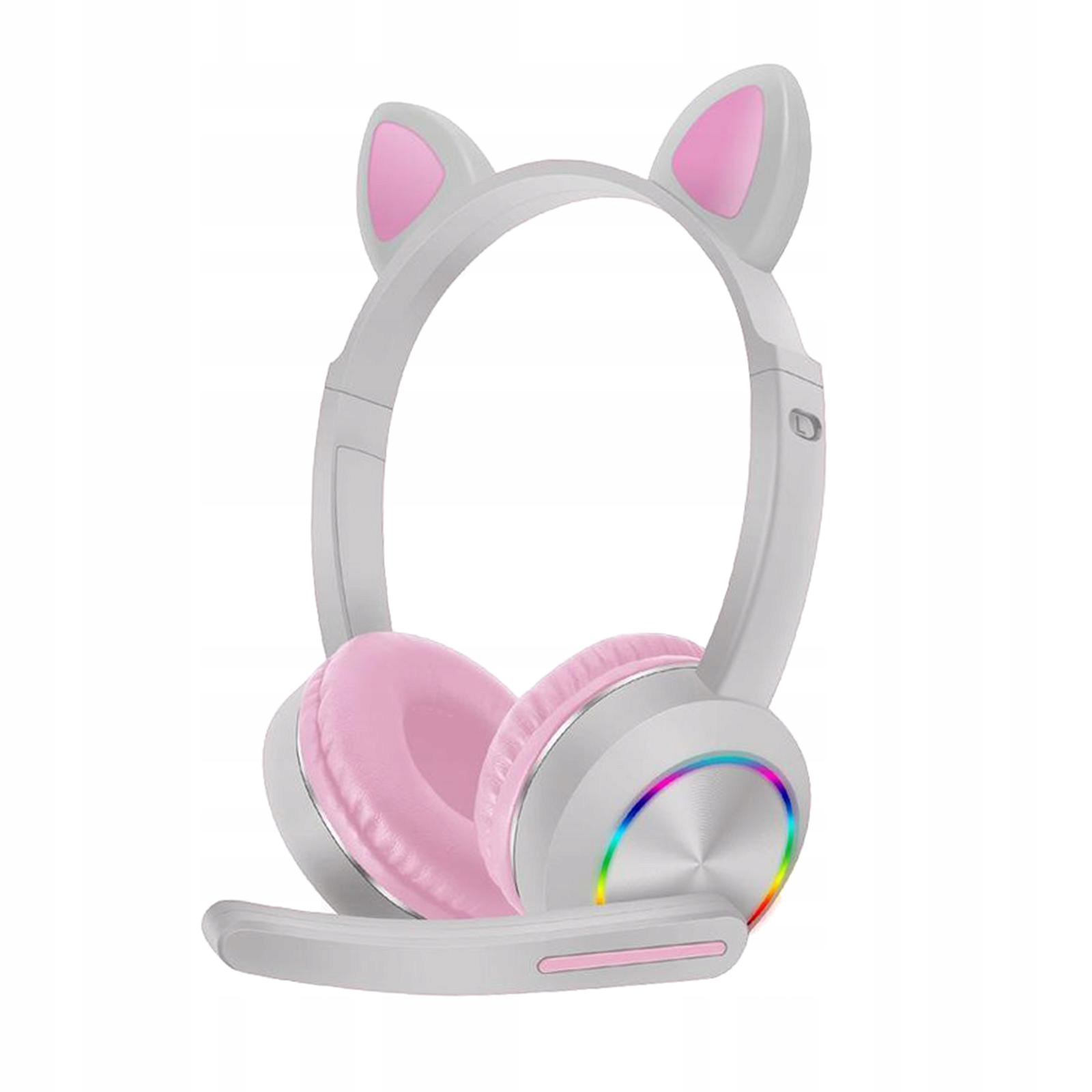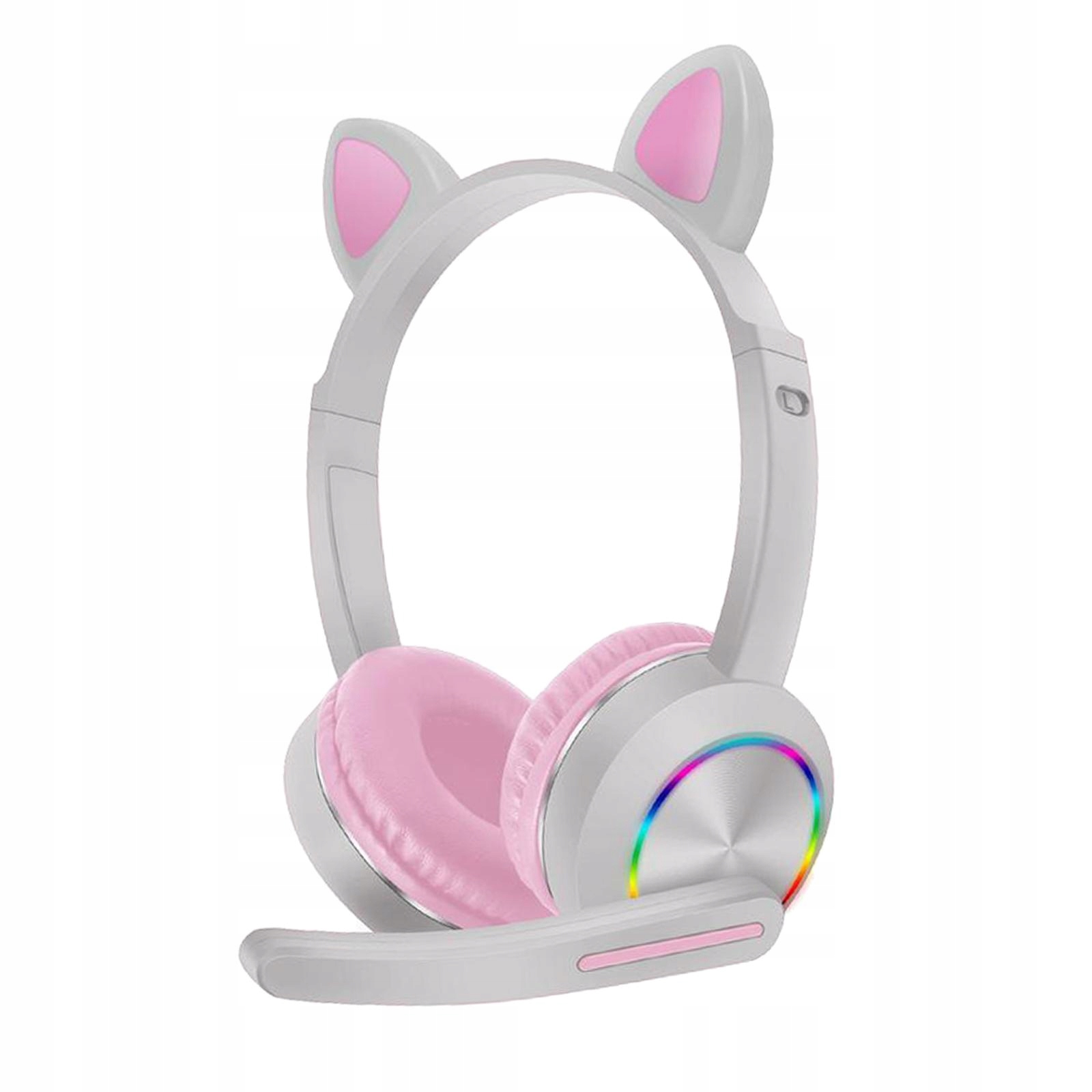 Набір навушників бездротового Bluetooth навушники з котячими вухами світлодіодні навушники, набір для дітей Pink Grey
