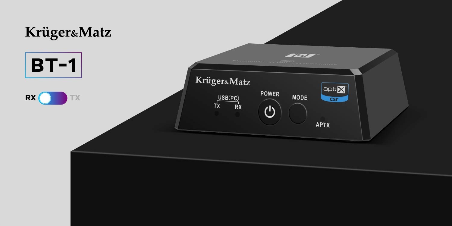 Трансмітер 2-в-1 Kruger&Matz BT-1, тобто передавач і приймач Bluetooth в одному, дозволить вам розширити функціональність вашого старого RTV обладнання з можливістю бездротової передачі аудіосигналів. Незалежно від того, чи хочете ви слухати музику з Інтернету або дивитися фільм, не заважаючи іншим домочадцям - цей непомітний пристрій дасть вам таку можливість!