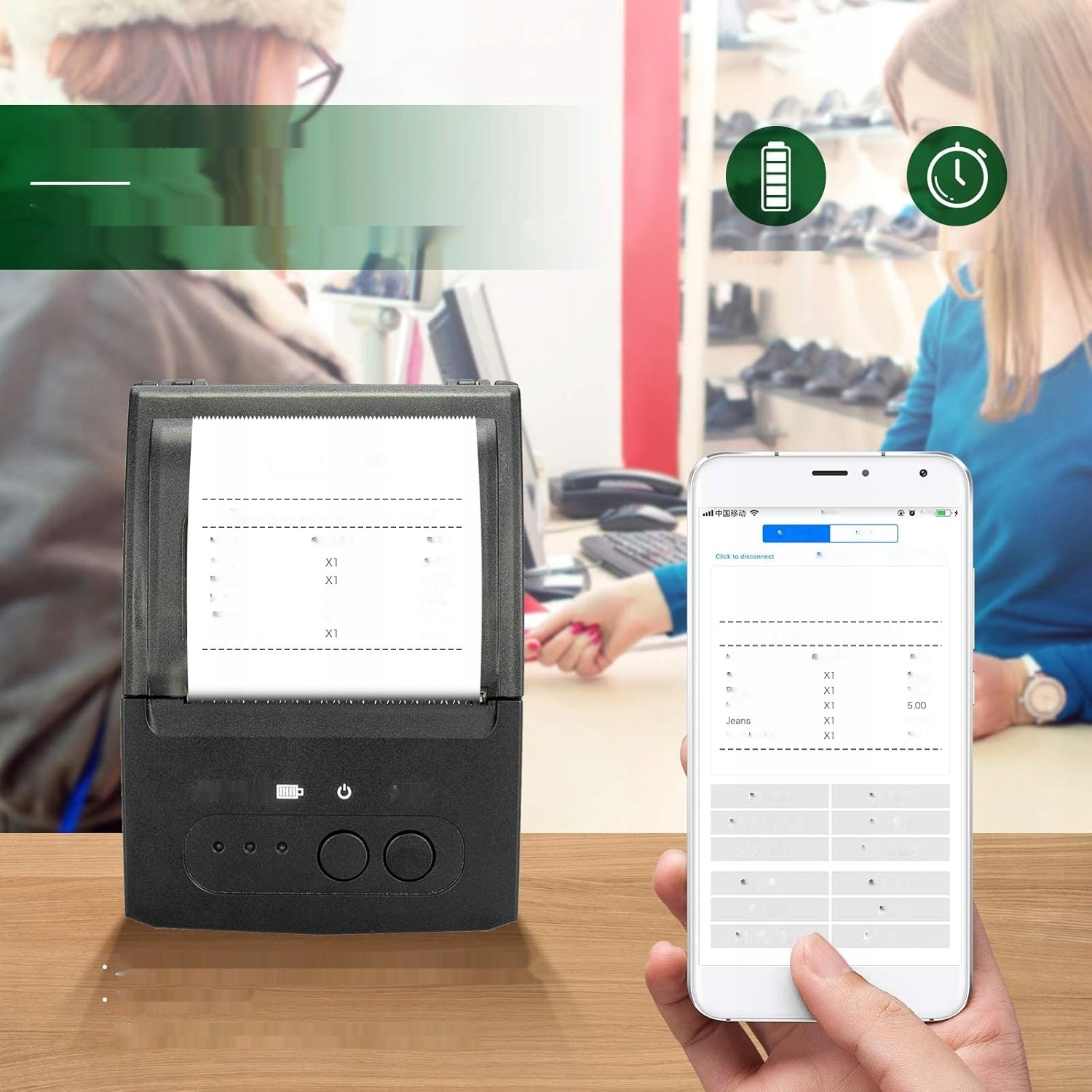 ✅ Тривалий час очікування: цей принтер чеків Bluetooth оснащено акумулятором великої ємності на 2000 мАг і працює в режимі очікування до 7 днів. Термальний принтер штрих-кодів Bluetooth 4.0 із функцією автоматичного переходу в режим сну та автоматичного пробудження Мобільний бездротовий принтер, який підходить для таких команд Android, як: ESC/POS/STAR.