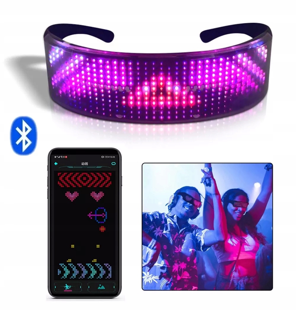 BLUETOOTH RGB LED GLASSES ОСВІТЛЕННЯ PARTY GLASSES 700MAH, ПРОГРАМОВАНИЙ