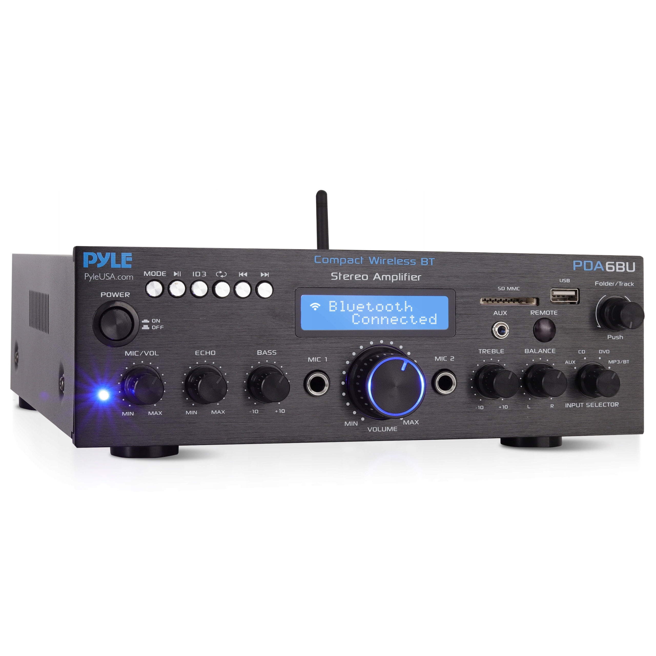 ✅ РК і пілот - цифровий РК -дисплей показує назви пісень завдяки тегу ID3. Пілот та FM -антена забезпечують зручну віддалену роботу та легкий контроль підсилювача.