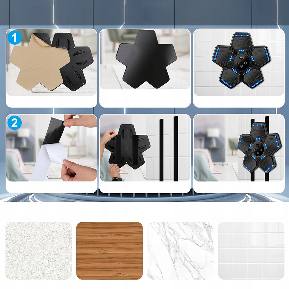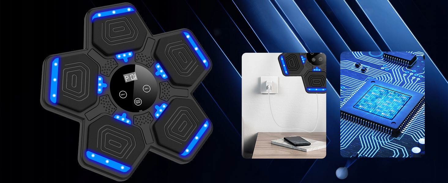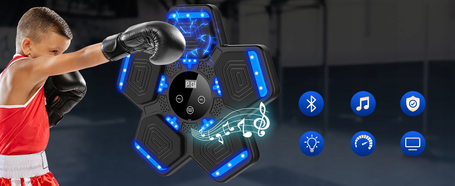 Залишайтеся мотивованими за допомогою динамічних синіх миготливих вогнів для правильних ударів. Пропущені або неправильні удари викликають звук "дінь-дон", підвищуючи точність настінної музичної системи боксерської машини.