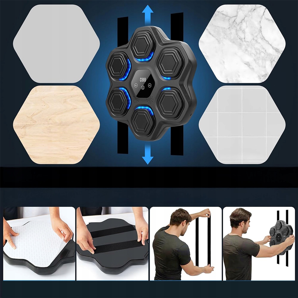 Наша машина для боксу з музикою кріпиться на стіні, свердління не потрібне, що економить місце та час встановлення. Він має двосторонню конструкцію або дизайн на липучці, щоб розмістити боксерську машину з музикою на стіні, і у вас буде домашнє тренажерне обладнання з музичною скринькою. (Під час встановлення зверніть увагу на розташування поблизу розетки.) Ви можете уникнути вдома, не відвідуючи спортзал, заощадивши час і гроші.