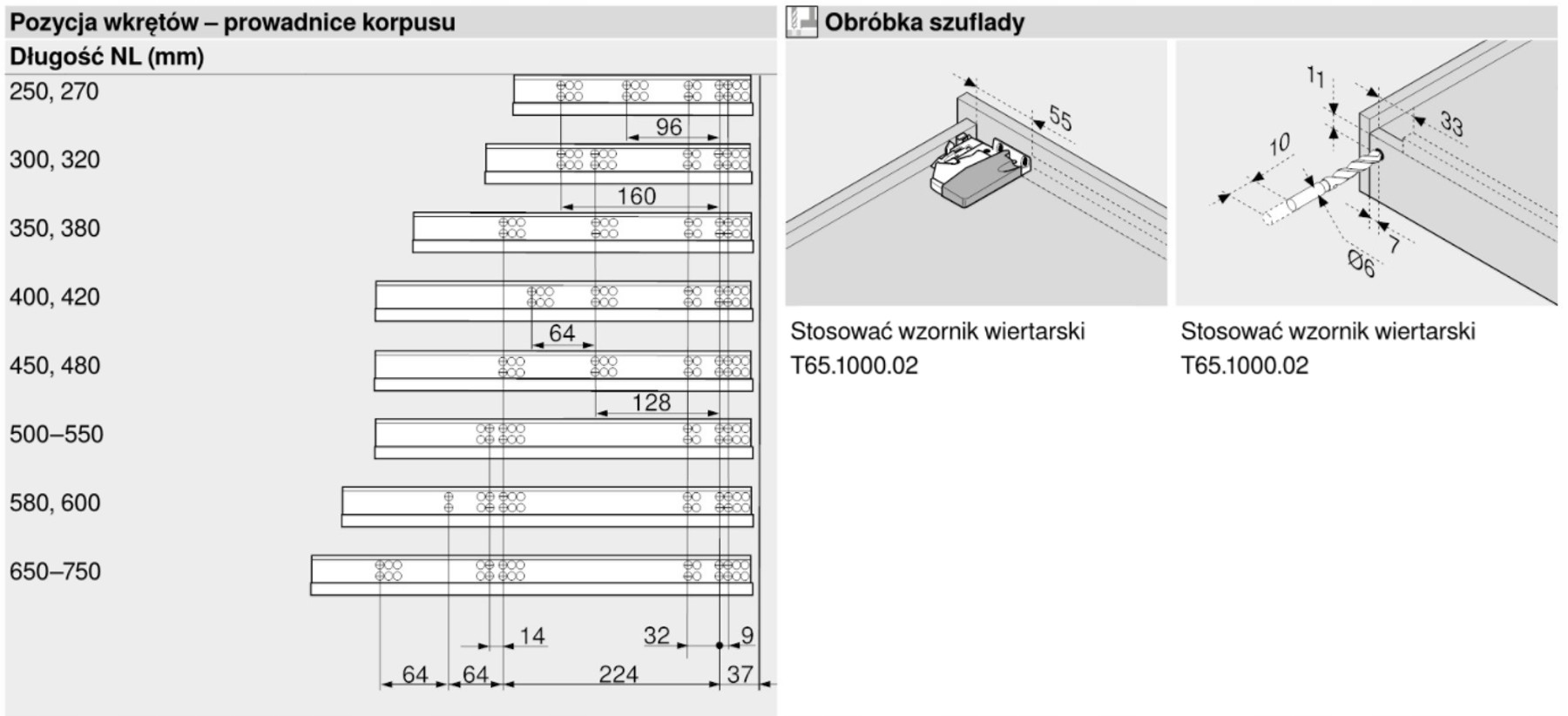 BLUM SLIDES TANDEM 550H2700B ЧАСТКОВЕ РОЗДІЛЕННЯ