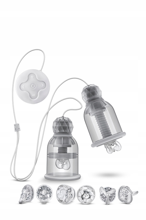 Покладіть чашки на груди. Закрутіть верхню частину чашок і розставте лоскотки. Використовуйте контролер для керування швидкістю та моделями масажу. Включає 3 унікальні, м’які, текстуровані насадки для стимуляції сосків. Насадки можна зручно прикріпити або від'єднати за допомогою вбудованого магніту. Виріб перезаряджається і не потребує батарейок. USB-кабель для заряджання входить у комплект.