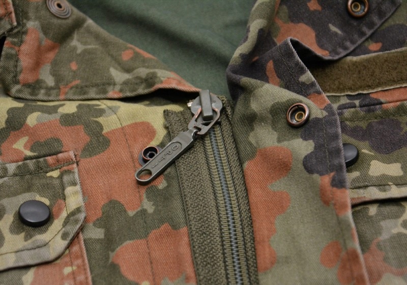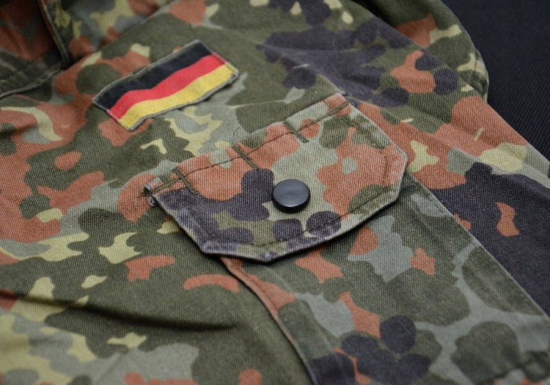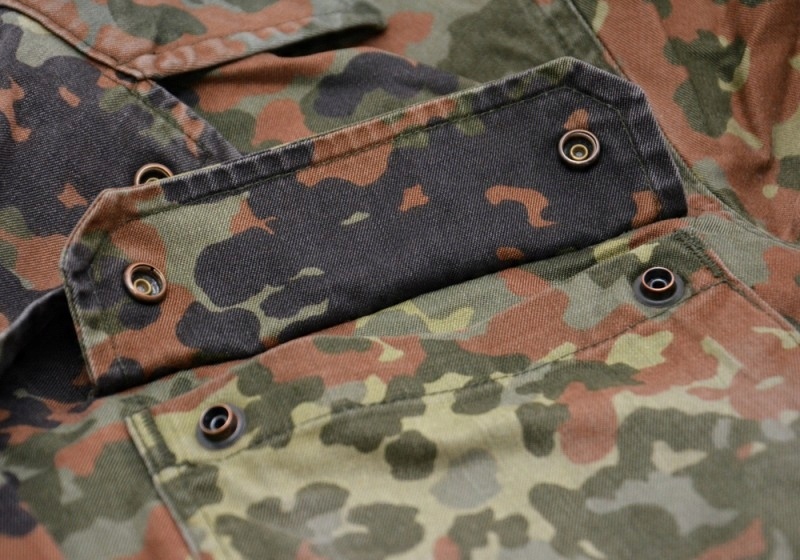 Оригінальний камуфляжний світшот Flecktarn із засобів німецької армії. Світшот оснащений двома кишенями на висоті грудей - обидві застібаються на застібки, одна кишеня на плечі та вентиляційні отвори під пахвами. Сорочка має регулювання рукава за допомогою липучки. Закривається на блискавку, прикриту клапаном. На плічках є німецькі прапорці, які при необхідності легко знімаються.
