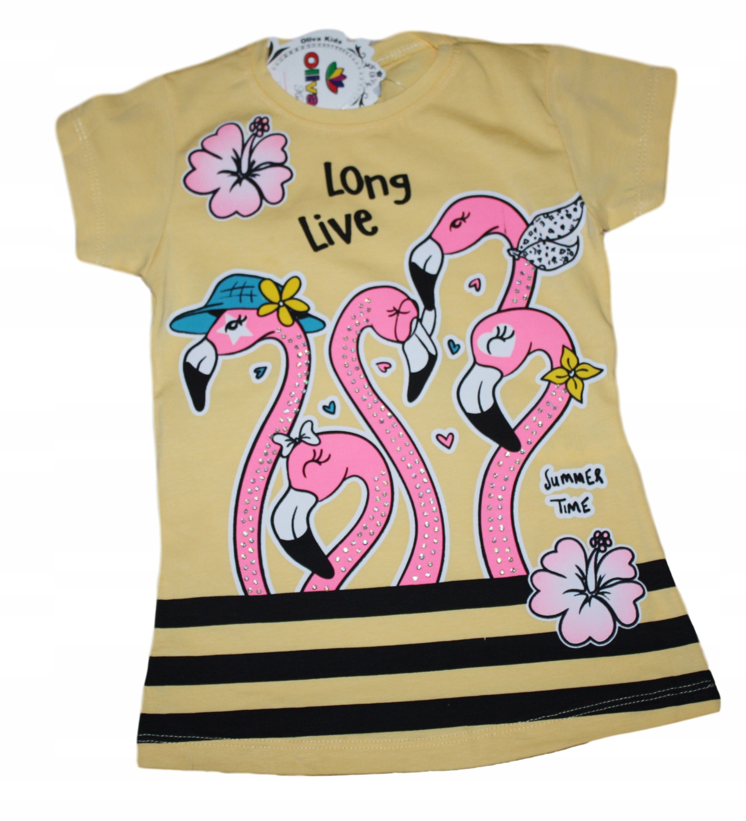 Предмет цього аукціону - чудова блуза-туніка з аплікацією фламінго, прикрашеною камінням.Смужки внизу (тільки спереду та спинки однотонні)