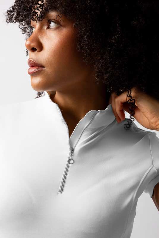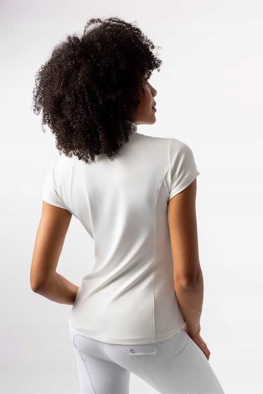 Блузка поєднує в собі стильний, жіночний крій і функціональність, необхідну під час фізичних навантажень. Завдяки повітропроникним, швидковисихаючим матеріалам і практичним деталям, це чудовий вибір для верхової їзди та інших видів спорту.