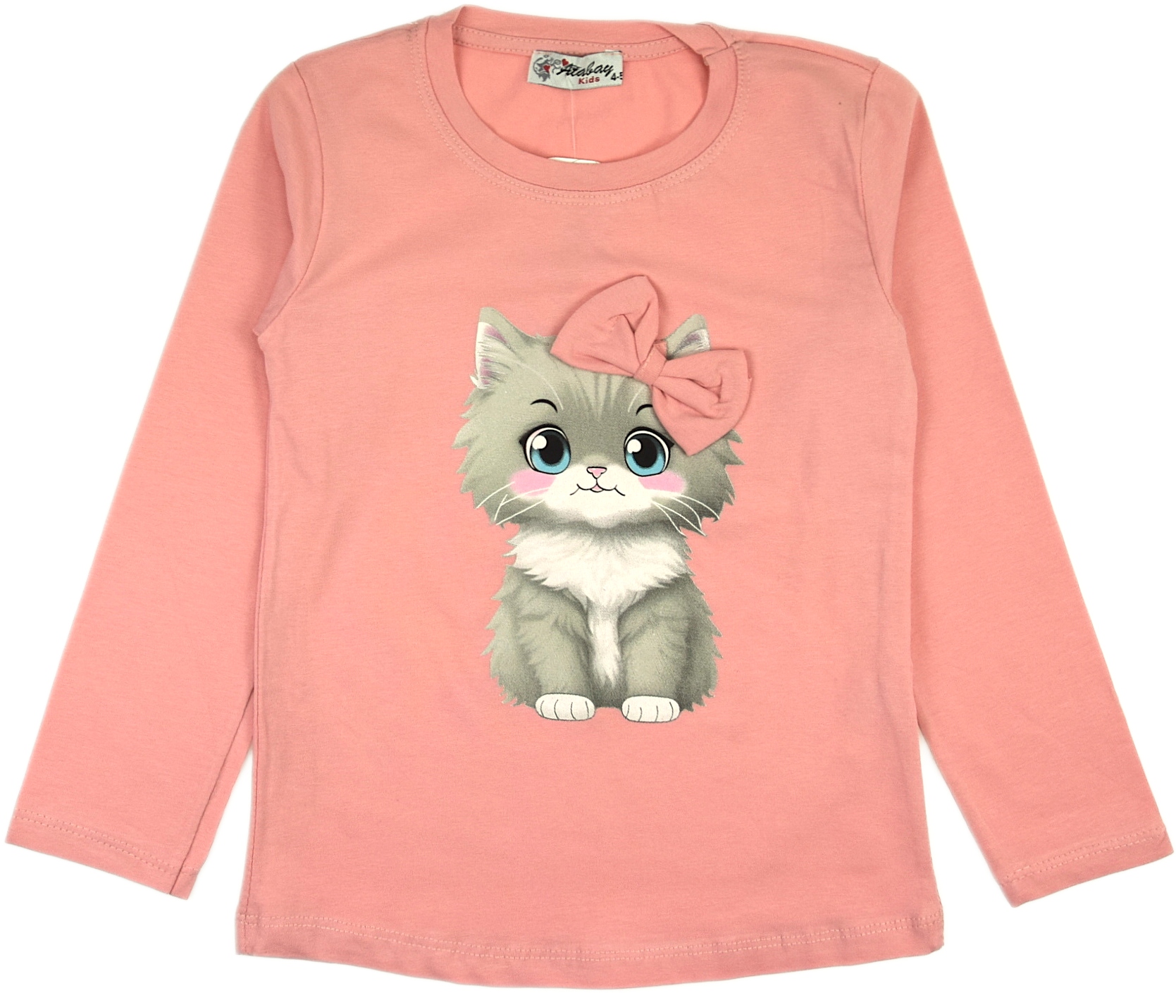 Бавовняна блуза для дівчина. Приємна та ніжна на дотик, приємна до тіла. Блуза з аплікацією котика з бантом. Прямий крій, довгий рукав, ніжний матеріал. Ідеально підходить для холодних днів або як зимова нижня сорочка.