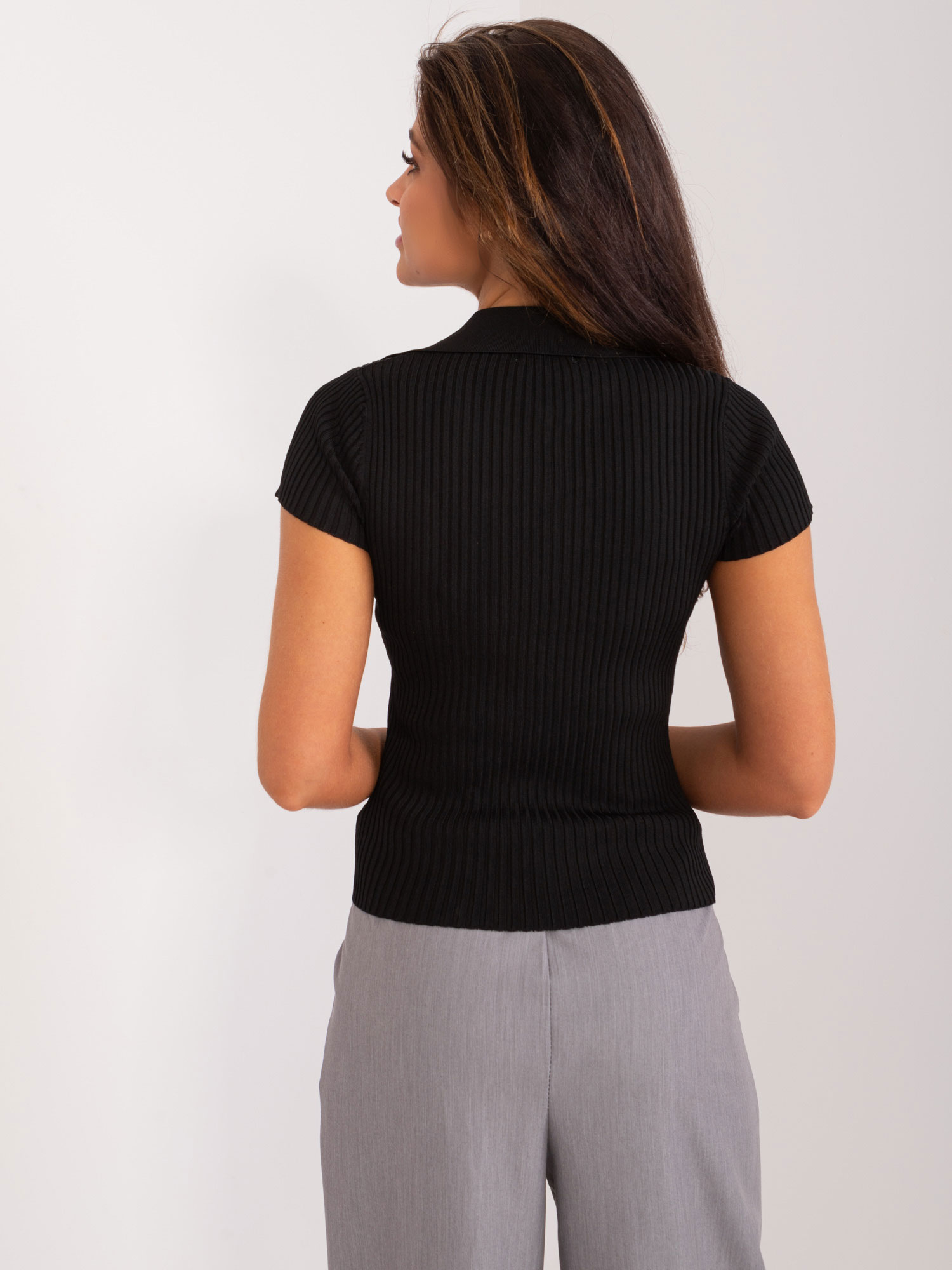 BLUZKA DOPASOWANA damska prążkowana z kołnierzykiem