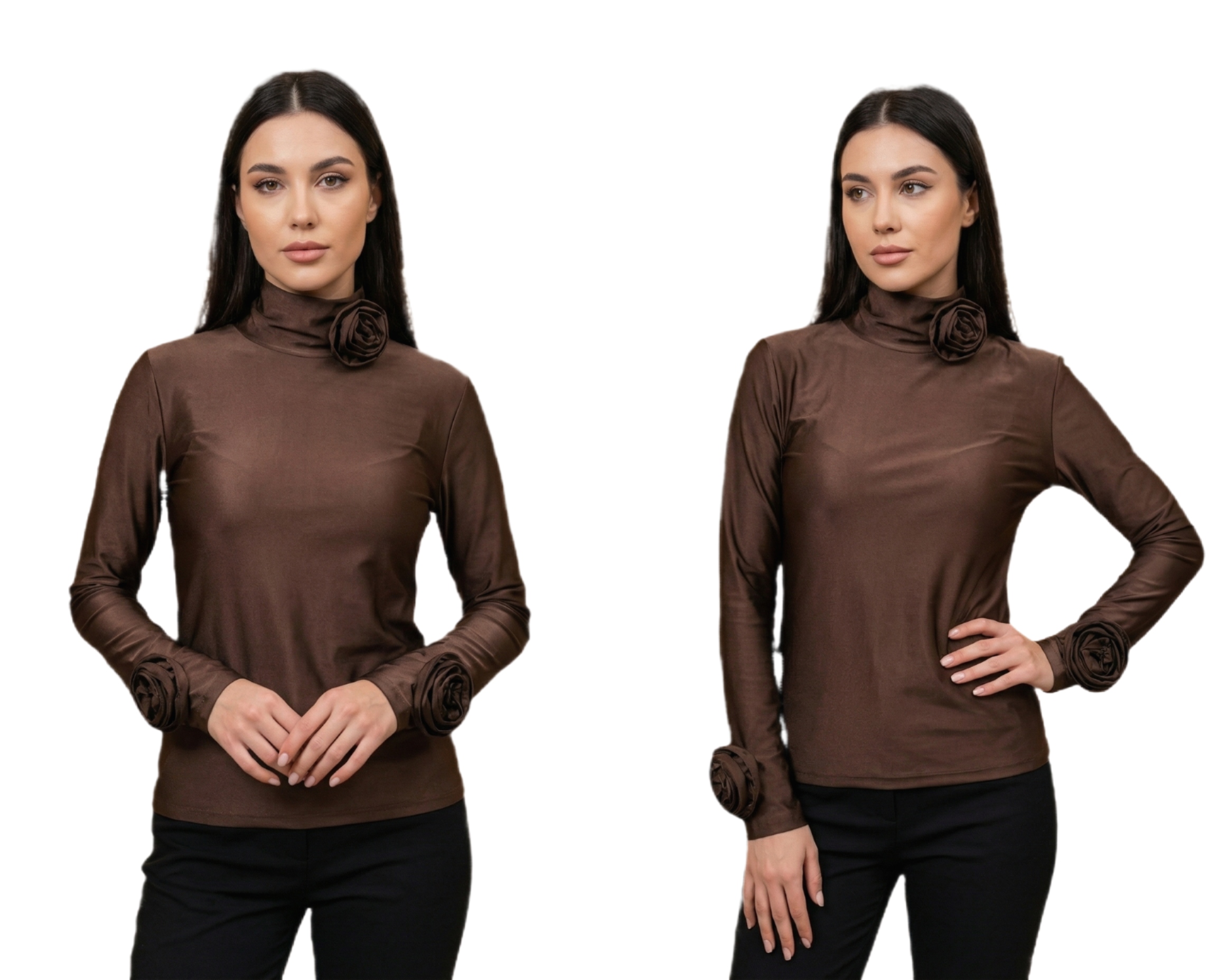 БЛУЗКА ГОЛЬФ ЕЛЕГАНТНОГО СТИЛЬНОГО КРОЮ З ДОВГИМ РУКАВОМ НОВОРІЧНА ТРОЯНДОВА КОРИЧНЕВА