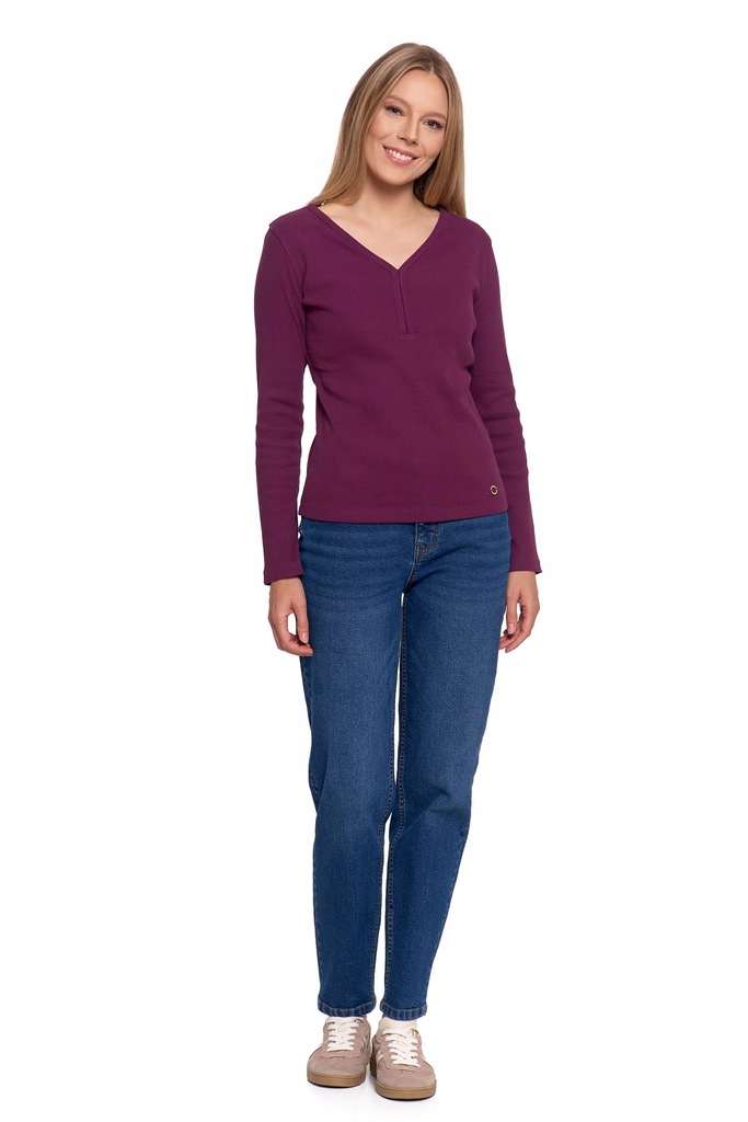 Жіноча блуза в рубчик - з довгими рукавами та V-подібним вирізом
