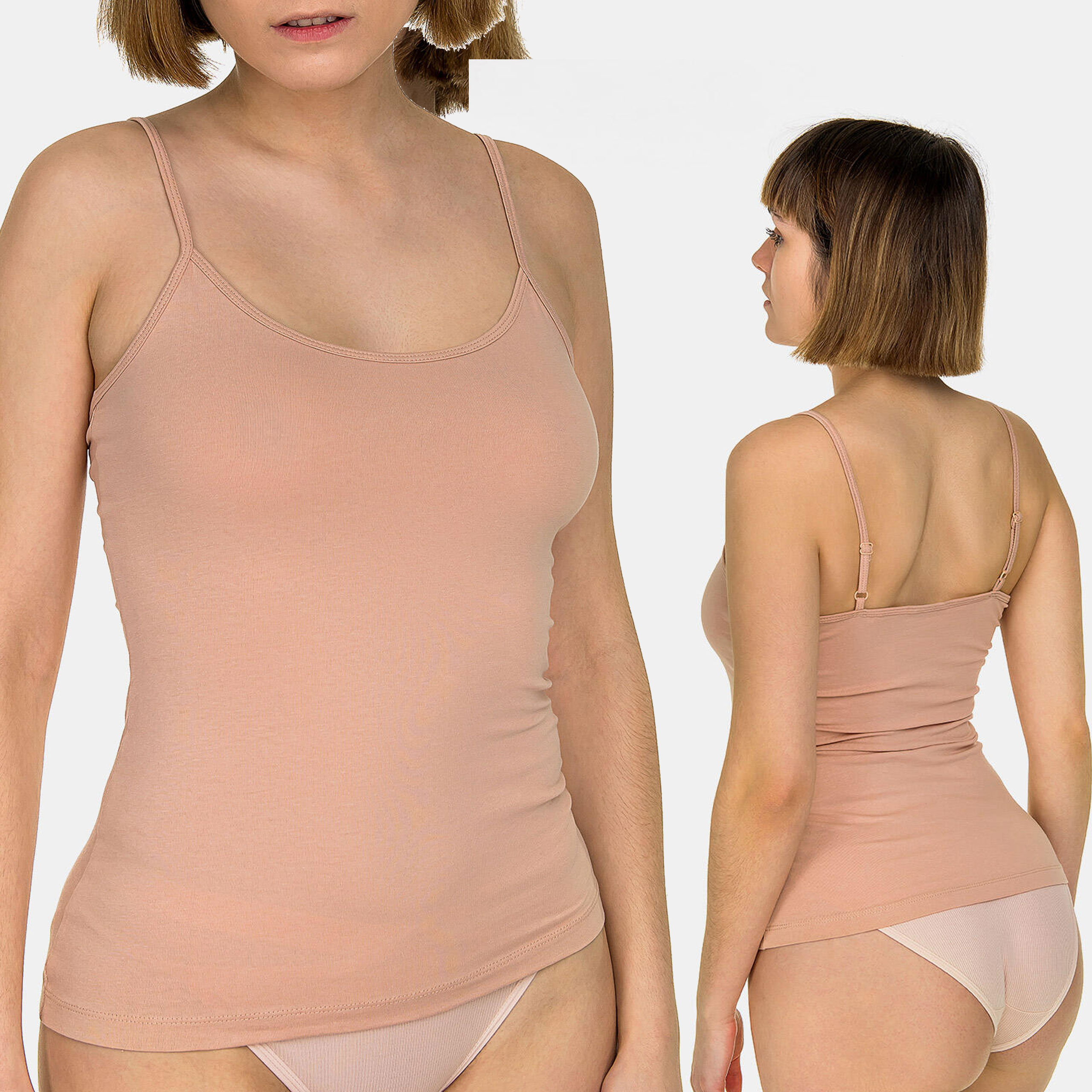 БЛУЗКА ЖІНОЧА ТОП, ГЛАДКІ БРЕТЕЛЬКИ, ГУМКА, БАВОВНА, БЕЖЕВА 2XL