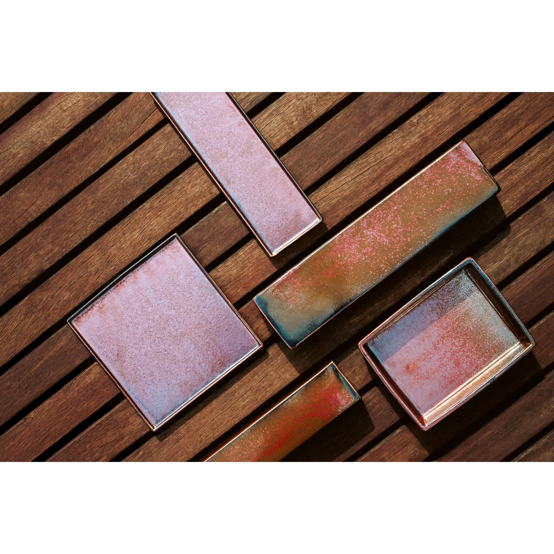 Поверхня кожного елемента покрита реактивною глянцевою глазур’ю, яка підкреслює інтенсивність кольорів та тонкий ефект. плямистість. Це завдяки інноваційній техніці випалу, завдяки якій кожен виріб порцеляни FLAME виглядає якунікальний витвір майстерності.