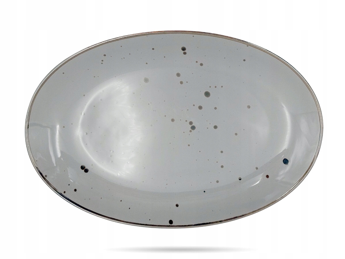 Овальне блюдо із серії Cottage Grey польського бренду Porcelain Bogucice. Блюдо з порцеляни, сірого кольору, прикрашене нерегулярним крапчастим візерунком. Піднос ідеально підходить для подачі основних страв і закусок. Ємність 300 мл. Висота 10,5 см. Можна мити в посудомийній машині.