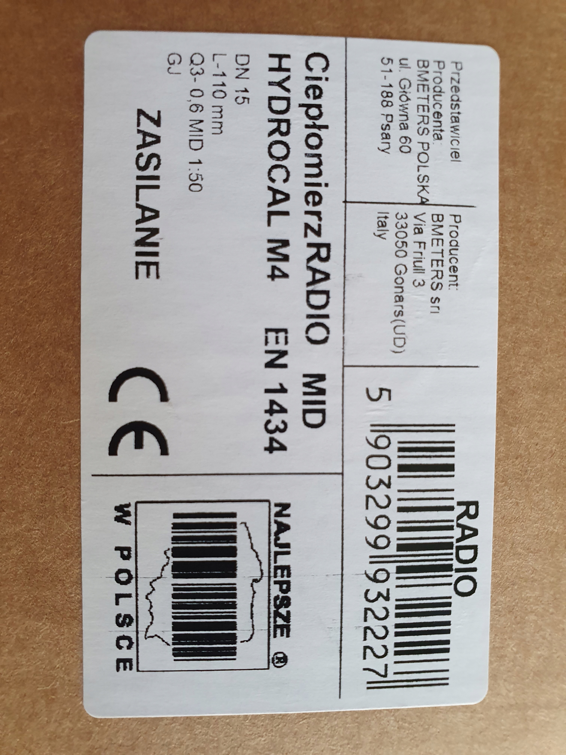 BMETERS CIEPŁOMIERZ HYDROCAL M4 DN15 ZASILANIE rok prod. 2024