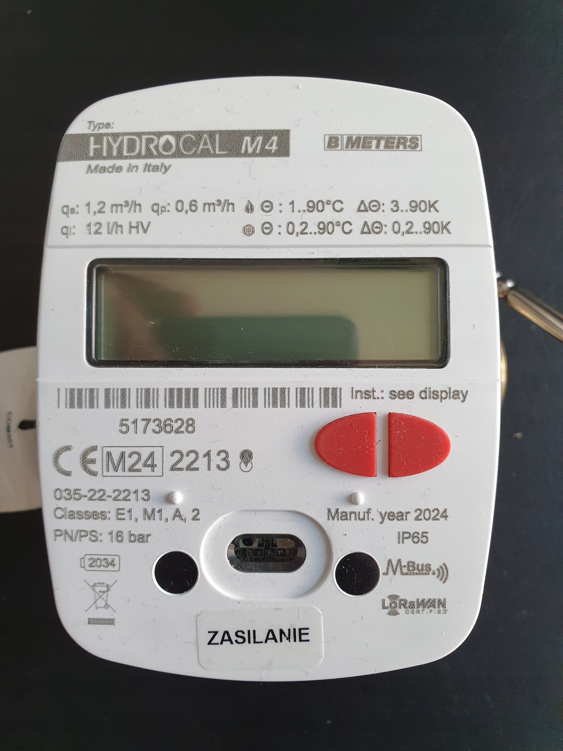 Теплолічильник Hydrocal-M4 - це сучасний радіолічильник тепла для квартир і невеликих будинків виробництва BMETERS. Різниця температур, виміряна точними температурними датчиками в поєднанні з вимірюванням витрати води, дозволяє з дуже високою точністю обчислювати енергію нагріву та охолодження. Компактна конструкція теплолічильника Hydrocal-M4 розроблена відповідно до останніх тенденцій вимірювання тепла. Безмагнітна передача між датчиком потоку та електронним блоком забезпечує надійність роботи, високу стабільність вимірювань, низькі пороги пуску та повний захист від спроб впливу на пристрій магнітним полем. Лічильник тепла сумісний із системою дистанційного зчитування HYDROLINK, що дозволяє отримувати дані через радіо (W-MBUS або LORA). Він також дозволяє підключати два імпульсних лічильники води, що забезпечує широкий спектр застосувань. Лічильник води повністю новий 2024 року випуску, узаконений до 31.12.2029.