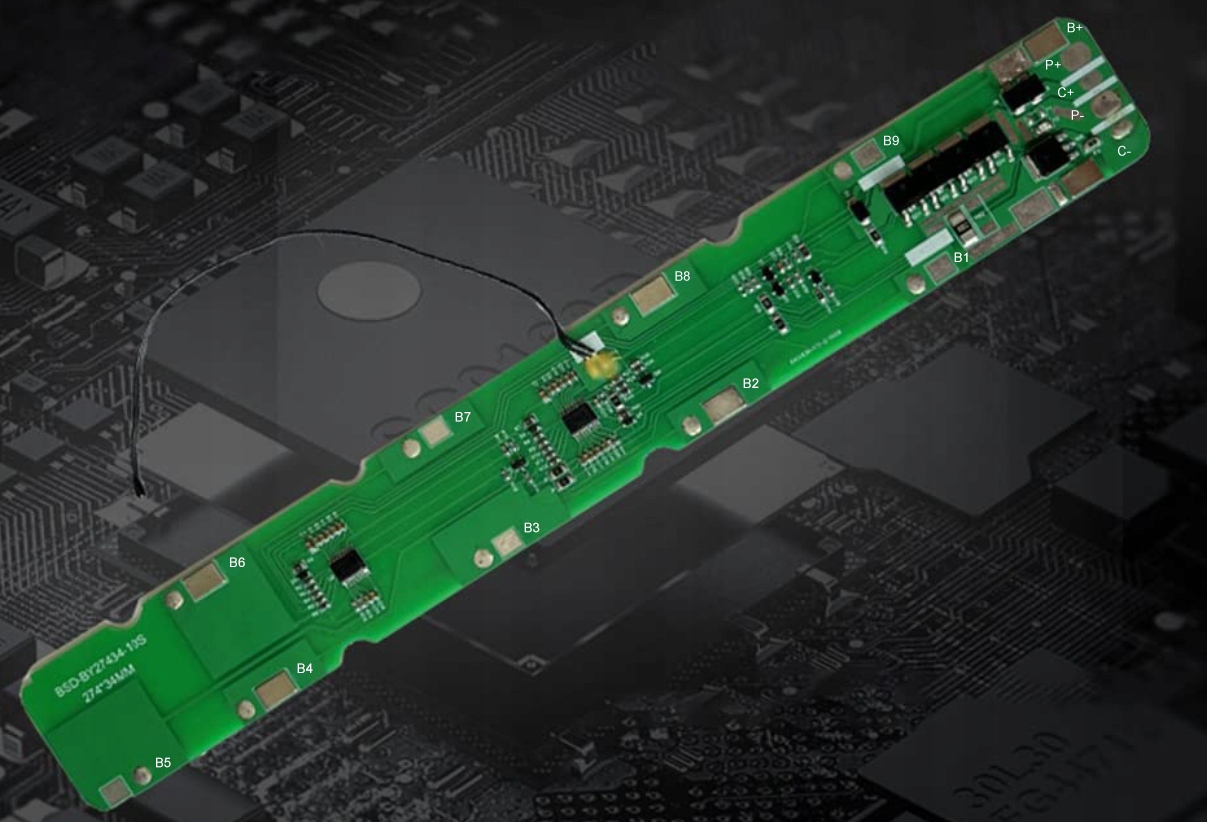 BMS виготовлено на високоякісних транзисторах Mosfet та IC. Двостороння друкована плата, висока стійкість до корозії, високий опір електростатичного розряду.