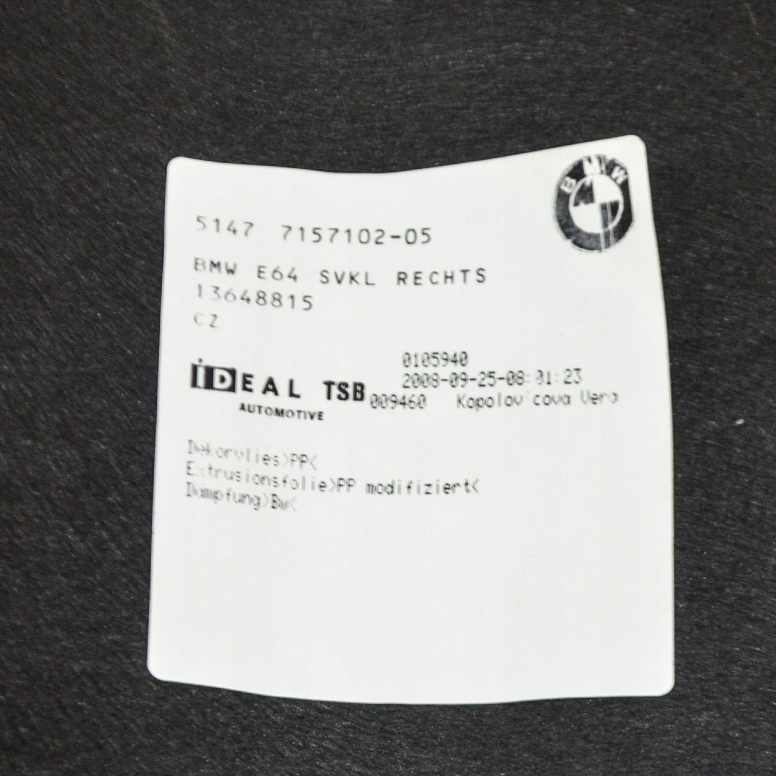 BMW 6 E63 E64 2009 Бекон / оббивка / вантажівка