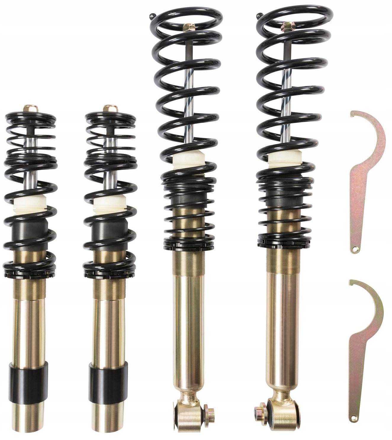 - Набір включає: повну передню та задню різьбові підвіски та гайкові ключі для регулювання висоти .